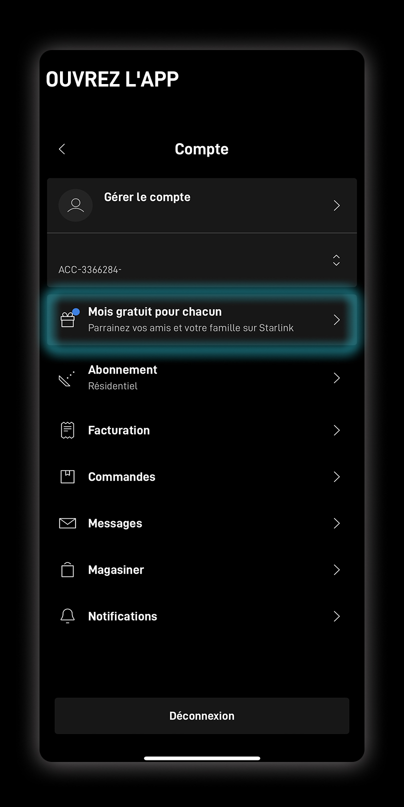 Log in op uw Starlink-account in de app of online.