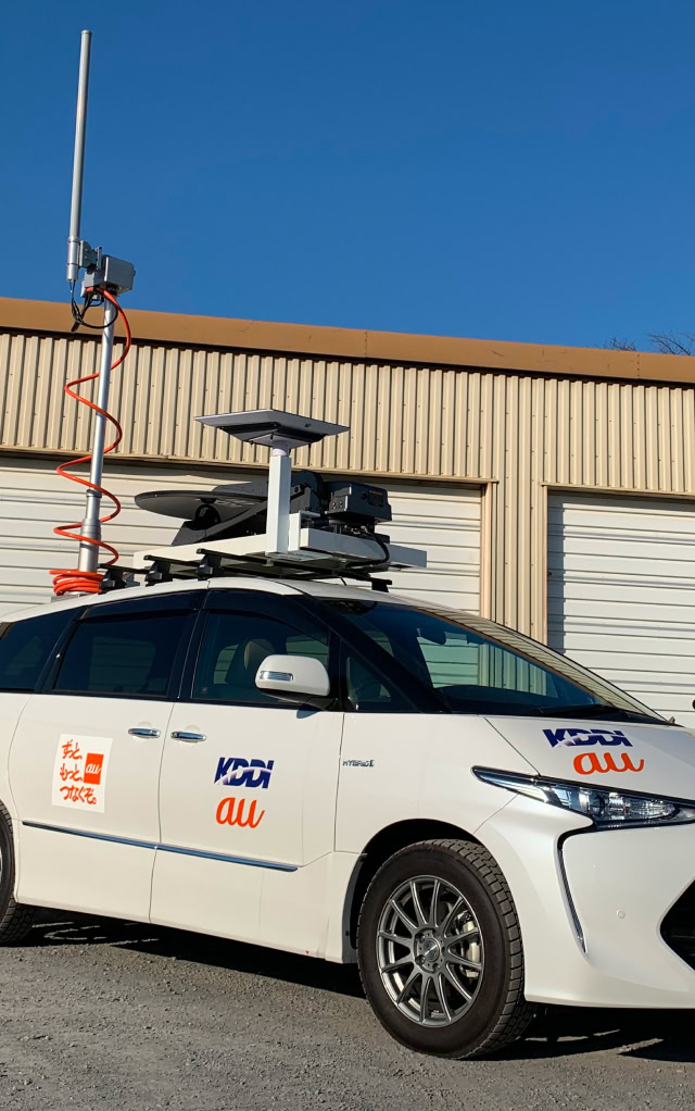 Vehicle-mounted base station: A system installed on vehicles to provide temporary connectivity on-site as a substitute for damaged base stations during disasters. First introduced by KDDI in 2006, this solution has now been miniaturized to the size of a compact car.