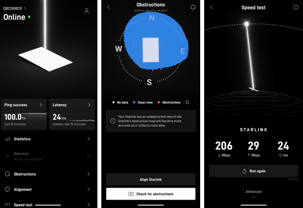 Starlink App: Download the Starlink app first. The app will help you find an unobstructed install location, manage your account, test your connection, and browse the shop.